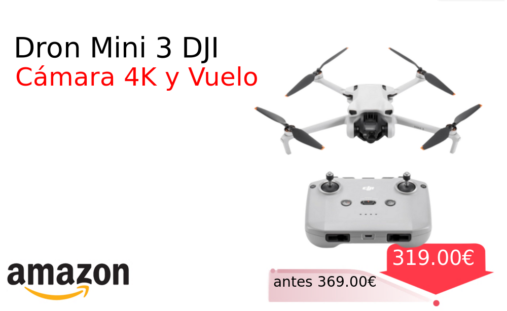Buen Precio✨ Dron Mini 3 DJI❗️🆕 #Amazon 🇪🇸 📛Precio Ya 319.00€❗️ (PVP: +369.00€) ✨Dron mini plegable con cámara 4K HDR tiempo de vuelo extendido y grabación vertical Funciones inteligentes y control remoto incluido para capturar momentos únicos. cholloya.com/DJI_MINI_3