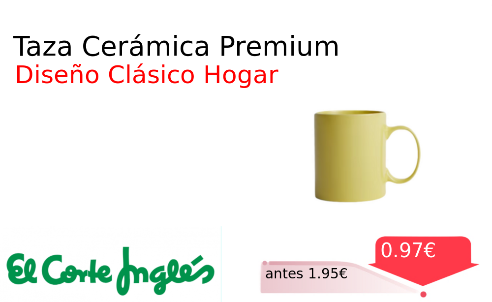 Mitad de precio✂️ Taza Cerámica Premium❗️🆕 #Elcorteingles 📛Precio Ya 0.97€❗️ (PVP: +1.95€) ✨Taza de cerámica de calidad premium con diseño clásico Ideal para tu desayuno diario o momentos de relax Fabricación española garantizada. cholloya.com/TAZA_PREMIUM_NM