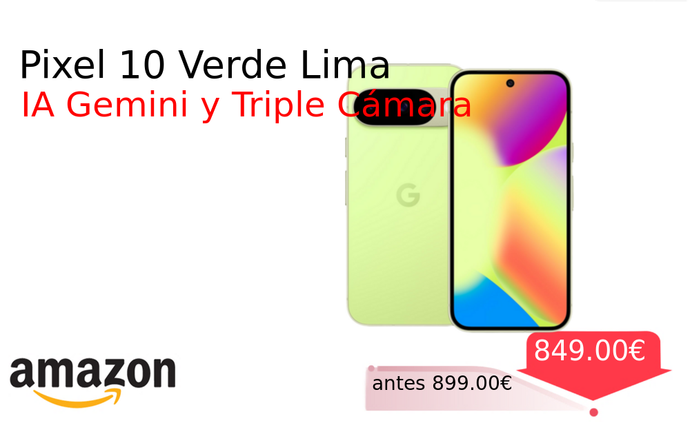 Buen Precio✨ Pixel 10 Verde Lima❗️🆕 #Amazon 🇪🇸 📛Precio Ya 849.00€❗️ (PVP: +899.00€) ✨Smartphone Android libre con inteligencia artificial Gemini triple cámara trasera avanzada y pantalla Actua de 6 3 pulgadas Batería de larga duración en color. cholloya.com/PIXEL_10_VERDE