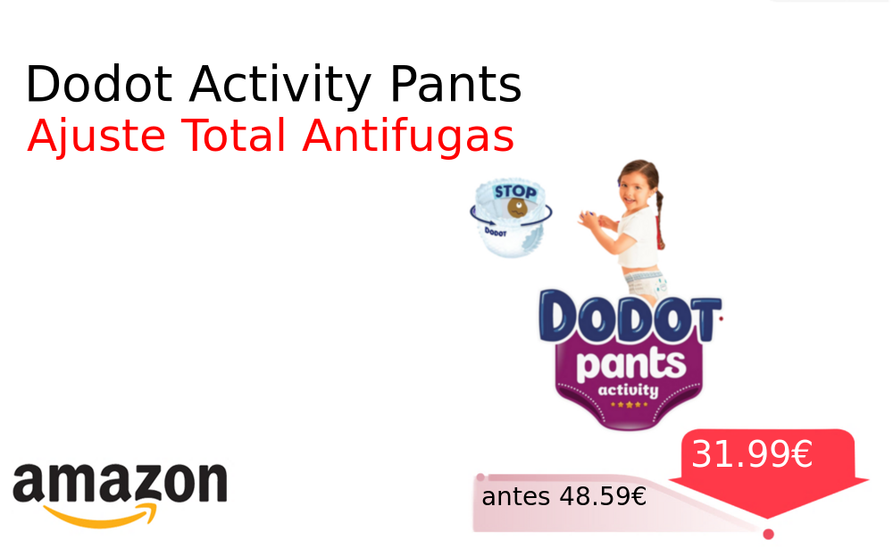 Más de un 30% 🚀 Dodot Activity Pants❗️🆕 #Amazon 🇪🇸 📛Precio Ya 31.99€❗️ (PVP: +48.59€) ✨Pañal-braguita con ajuste perfecto 360 para máxima protección Extra suave y ultra absorbente ideal para bebés activos Incluye toallitas de regalo. cholloya.com/DODOT_PANTS_6