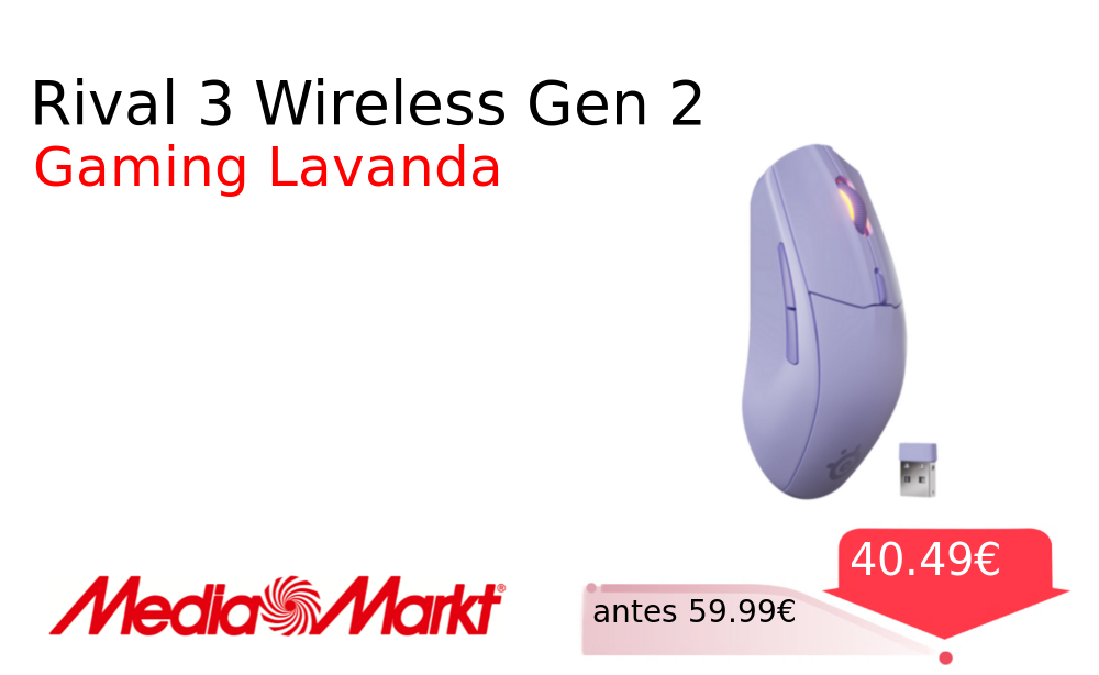 Más de un 30% 🚀 Rival 3 Wireless Gen 2❗️🆕 #MediaMarkt 📛Precio Ya 40.49€❗️ (PVP: +59.99€) ✨Ratón gaming inalámbrico con conectividad dual 2 4GHz y Bluetooth Sensor de 18000 ppp para máxima precisión Latencia optimizada de 1 9 ms Diseño. cholloya.com/STEELSERIES_RIV