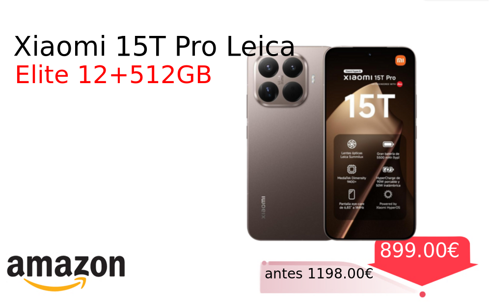 Buen Precio✨ Xiaomi 15T Pro Leica❗️🆕 #Amazon 🇪🇸 📛Precio Ya 899.00€❗️ (PVP: +1198.00€) ✨Smartphone premium con lentes Leica Summilux pantalla Eye Care de 144 Hz y HyperCharge ultrarrápida Rendimiento excepcional en diseño elegante Mocha Gold. cholloya.com/XIAOMI_15T_PRO