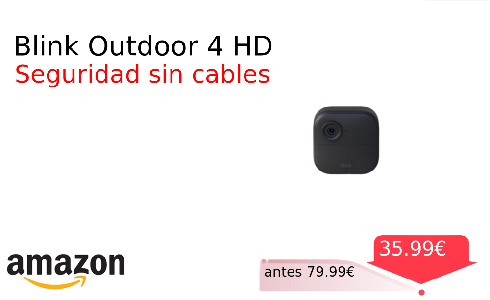 Mitad de precio✂️ Blink Outdoor 4 HD❗️🆕 #Amazon 🇪🇸 📛Precio Ya 35.99€❗️ (PVP: +79.99€) ✨Cámara de seguridad inteligente HD sin cables con dos años de autonomía Detección de movimiento optimizada y compatibilidad total con Alexa Incluye módulo Sync. cholloya.com/BLINK_OUTDOOR_4