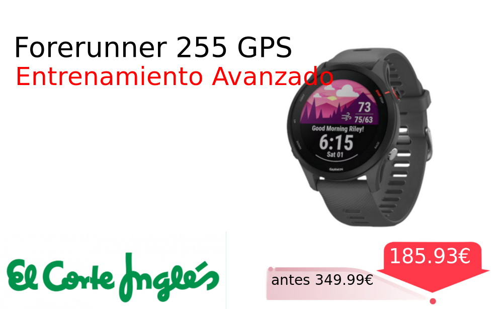 40% 📉 Vaya descuentazo‼‼ Forerunner 255 GPS❗️🆕 #Elcorteingles 📛Precio Ya 185.93€❗️ (PVP: +349.99€) ✨Reloj deportivo con GPS avanzado y monitorización integral para entrenamientos Ofrece métricas detalladas de rendimiento y resistencia durante actividades al aire libre. cholloya.com/GARMIN_FORERUNN