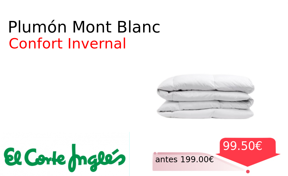 Mitad de precio✂️ Plumón Mont Blanc❗️🆕 #Elcorteingles 📛Precio Ya 99.50€❗️ (PVP: +199.00€) ✨Relleno nórdico con nivel térmico tres de plumón natural Calidad Mont Blanc que garantiza confort y abrigo durante las noches más frías del invierno. cholloya.com/FERDOWN_MONTBLA