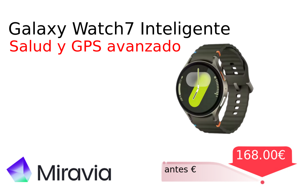 Buen Precio✨ Galaxy Watch7 Inteligente❗️🆕 #Miravia 📛Precio Ya 168.00€❗️ (PVP: +€) ✨Reloj inteligente con Galaxy AI para análisis de salud avanzado GPS de doble frecuencia y autonomía extendida Resistente al agua y construido en titanio. cholloya.com/SAMSUNG_WATCH7