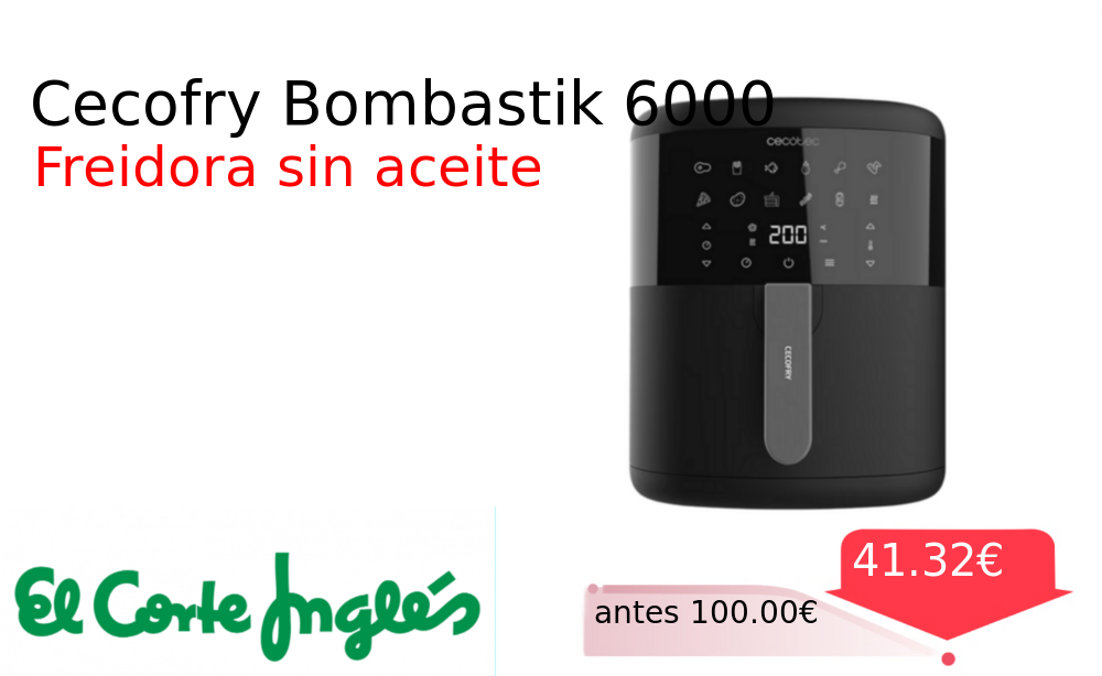 Mitad de precio✂️ Cecofry Bombastik 6000❗️🆕 #Elcorteingles 📛Precio Ya 41.32€❗️ (PVP: +100.00€) ✨Freidora de aire Cecotec con capacidad de seis litros tecnología avanzada para cocinar de forma saludable y resultados crujientes sin aceite. cholloya.com/CECOTEC_CECOFRY