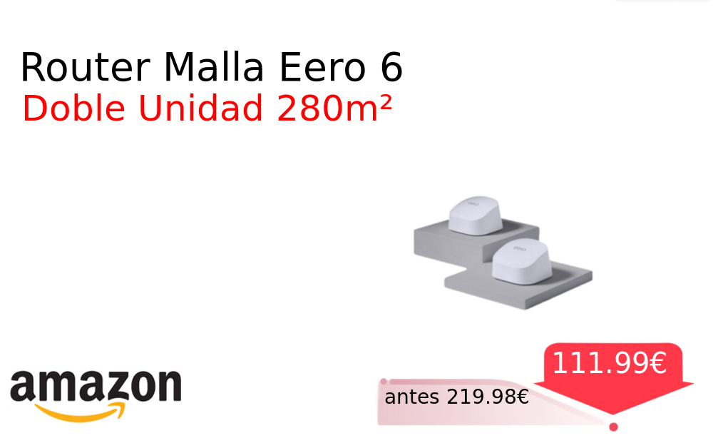 40% 📉 Vaya descuentazo‼‼ Router Malla Eero 6❗️🆕 #Amazon 🇪🇸 📛Precio Ya 111.99€❗️ (PVP: +219.98€) ✨Sistema wifi de malla con cobertura amplia para toda la casa Conexión estable por Ethernet y soporte para numerosos dispositivos simultáneos sin interrupciones. cholloya.com/EERO_6_MESH
