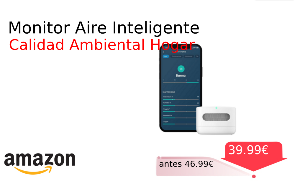 Buen Precio✨ Monitor Aire Inteligente❗️🆕 #Amazon 🇪🇸 📛Precio Ya 39.99€❗️ (PVP: +46.99€) ✨Controla la pureza del ambiente en tu hogar con precisión avanzada Dispositivo inteligente que analiza partículas y compuestos conectándose fácilmente con tu asistente virtual. cholloya.com/AMAZON_AIR_MONI