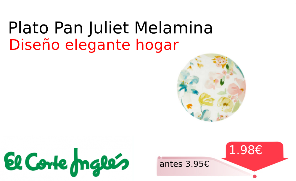 40% 📉 Vaya descuentazo‼‼ Plato Pan Juliet Melamina❗️🆕 #Elcorteingles 📛Precio Ya 1.98€❗️ (PVP: +3.95€) ✨Plato de melamina con diseño elegante para servir pan Material resistente y fácil de limpiar Ideal para desayunos y meriendas. cholloya.com/JULIET_PLATO_PA