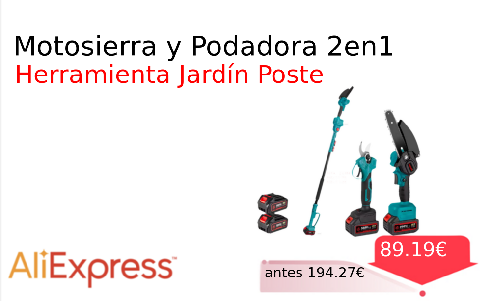 Mitad de precio✂️ Motosierra y Podadora 2en1❗️🆕 #AliExpress 📛Precio Ya 89.19€❗️ (PVP: +194.27€) ✨Herramienta de jardín 2 en 1 con motosierra sin escobillas y tijeras podadoras Incluye poste telescópico extensible para alcanzar ramas altas fácilmente funcionando. cholloya.com/ONEVAN_3500W_2E