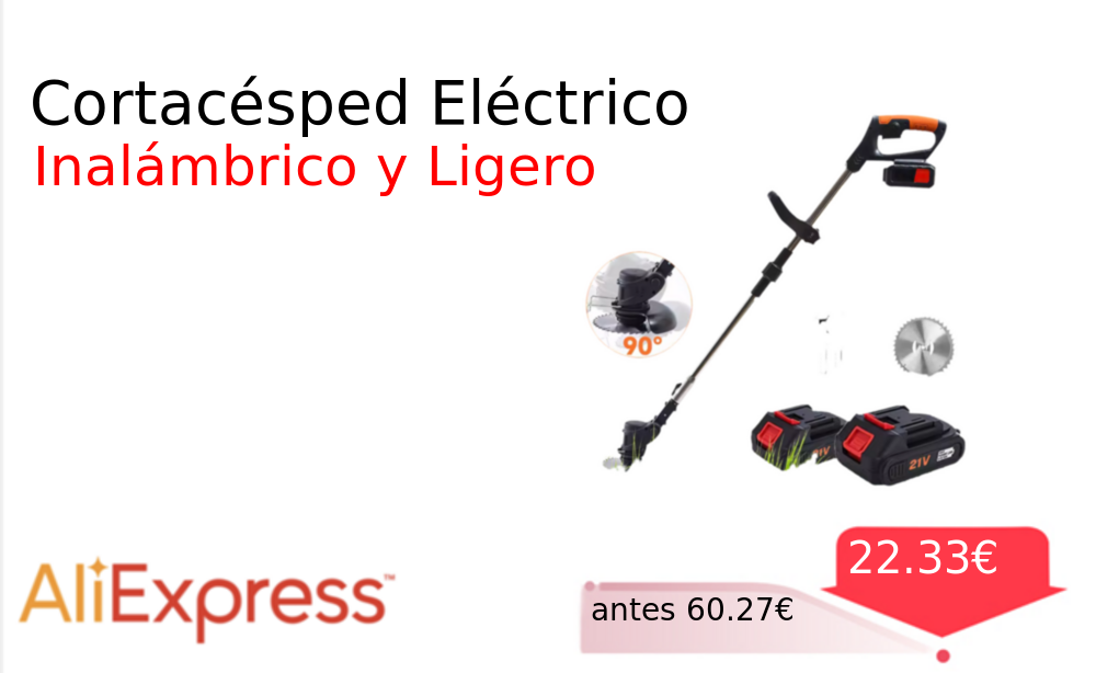 Mitad de precio✂️ Cortacésped Eléctrico❗️🆕 #AliExpress 📛Precio Ya 22.33€❗️ (PVP: +60.27€) ✨Cortacésped eléctrico inalámbrico con potente motor de 850W y 18000 RPM Incluye batería de 21V y cabezal ajustable para un corte preciso en cualquier. cholloya.com/CORTACESPED_ELE