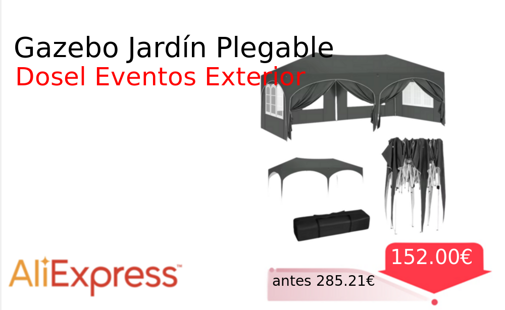 40% 📉 Vaya descuentazo‼‼ Gazebo Jardín Plegable❗️🆕 #AliExpress 📛Precio Ya 152.00€❗️ (PVP: +285.21€) ✨Gazebo plegable de 3x6 metros con seis paredes laterales altura regulable Resistente al agua y rayos UV incluye bolsa de transporte para eventos al. cholloya.com/GAZEBO_WOLTU_3X