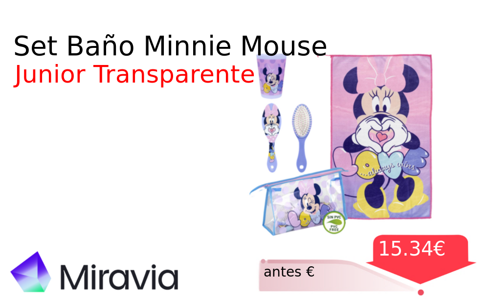 Buen Precio✨ Set Baño Minnie Mouse❗️🆕 #Miravia 📛Precio Ya 15.34€❗️ (PVP: +€) ✨Set de baño transparente con diseño Minnie Mouse para los más pequeños Incluye artículos esenciales de higiene personal con divertidos motivos infantiles. cholloya.com/SET_MOUSE_71247