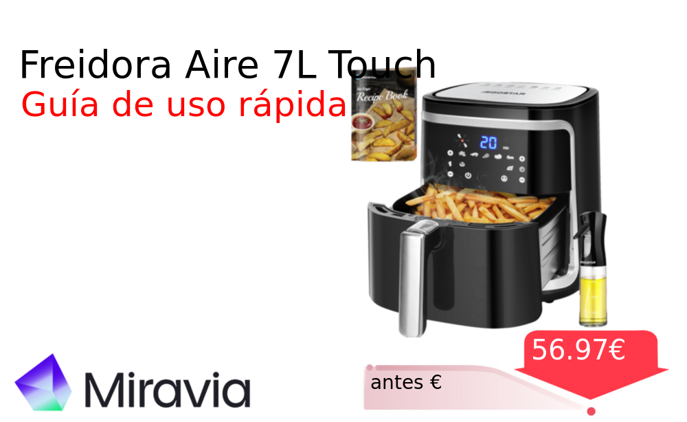 Buen Precio✨ Freidora Aire 7L Touch❗️🆕 #Miravia 📛Precio Ya 56.97€❗️ (PVP: +€) ✨Freidora de aire sin aceite con capacidad de 7 litros y 1900W Pantalla LED táctil siete programas automáticos función mantener caliente y modo manual. cholloya.com/AIGOSTAR_FREIDO