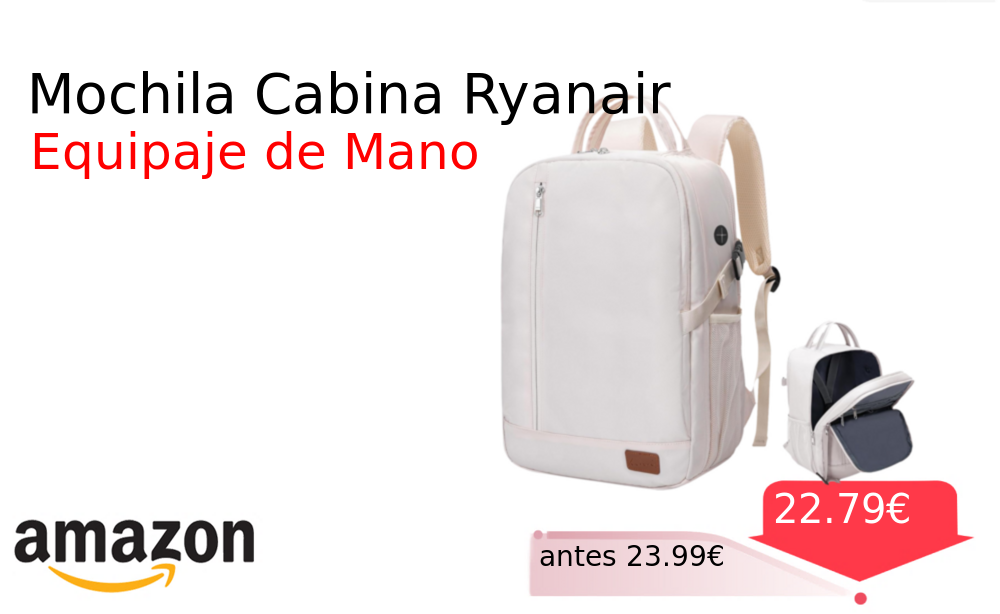 Buen Precio✨ Mochila Cabina Ryanair❗️🆕 #Amazon 🇪🇸 📛Precio Ya 22.79€❗️ (PVP: +23.99€) ✨Mochila de cabina con dimensiones perfectas para Ryanair Fabricada con materiales duraderos y diseño funcional ideal para viajes Compartimentos organizados y cómodas asas. cholloya.com/LOSSGA_CABINA