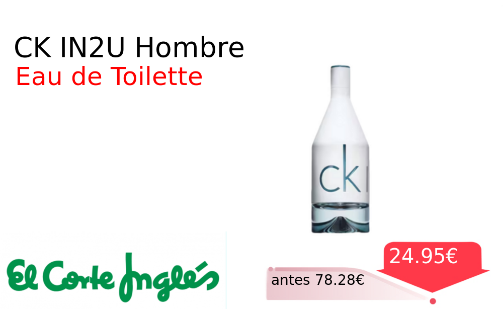 Mitad de precio✂️ CK IN2U Hombre❗️🆕 #Elcorteingles 📛Precio Ya 24.95€❗️ (PVP: +78.28€) ✨Fragancia masculina fresca y moderna con notas cítricas y amaderadas Ideal para el día a día proyecta confianza y estilo urbano con un aroma. cholloya.com/CK_IN2U_HOMBRE