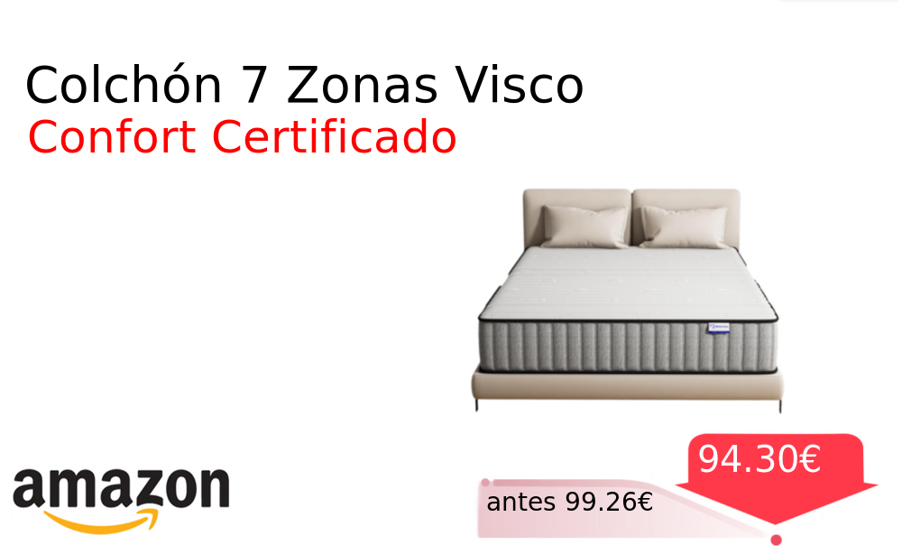 Buen Precio✨ Colchón 7 Zonas Visco❗️🆕 #Amazon 🇪🇸 📛Precio Ya 94.30€❗️ (PVP: +99.26€) ✨Colchón de muelles ensacados con espuma viscoelástica dureza H3 y siete zonas de confort Certificado Öko-Tex para máxima calidad y descanso reparador cada noche. cholloya.com/COLCHON_7ZONAS_