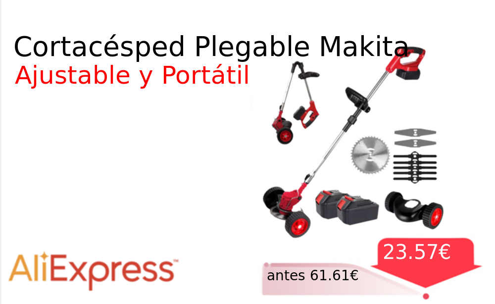 Mitad de precio✂️ Cortacésped Plegable Makita❗️🆕 #AliExpress 📛Precio Ya 23.57€❗️ (PVP: +61.61€) ✨Cortacésped eléctrico plegable con longitud ajustable funciona con batería Makita 18V Ideal para jardines pequeños diseño inalámbrico y fácil almacenamiento. cholloya.com/CORTACESPED_MAK