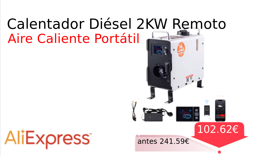 Mitad de precio✂️ Calentador Diésel 2KW Remoto❗️🆕 #AliExpress 📛Precio Ya 102.62€❗️ (PVP: +241.59€) ✨Calentador diésel compacto de 2KW para 12V 24V incluye pantalla de control remoto y alarma de monóxido Ideal para calefacción en vehículos y actividades. cholloya.com/CALENTADOR_DIES