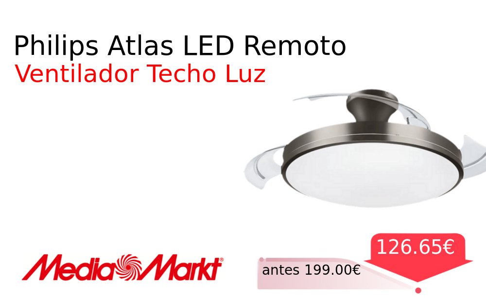 Más de un 30% 🚀 Philips Atlas LED Remoto❗️🆕 #MediaMarkt 📛Precio Ya 126.65€❗️ (PVP: +199.00€) ✨Ventilador de techo Philips Atlas con luz LED regulable mando a distancia y dos temporizadores Producto reacondicionado con garantía completa y funcionamiento perfecto. cholloya.com/PHILIPS_ATLAS_L