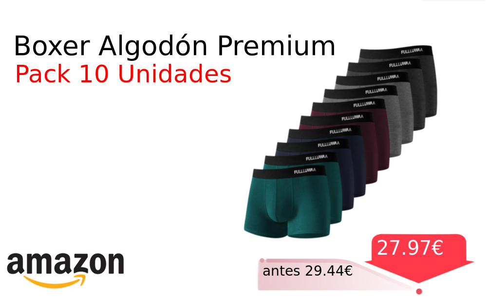 Buen Precio✨ Boxer Algodón Premium❗️🆕 #Amazon 🇪🇸 📛Precio Ya 27.97€❗️ (PVP: +29.44€) ✨Boxers de algodón premium para hombre cómodos y ajustados Pack de diez unidades con diseño ergonómico y suave textura para uso diario. cholloya.com/BOXER_ALGODON_1