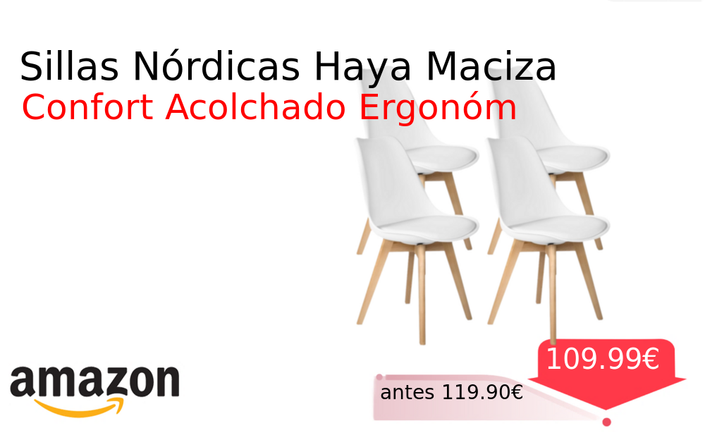 Buen Precio✨ Sillas Nórdicas Haya Maciza❗️🆕 #Amazon 🇪🇸 📛Precio Ya 109.99€❗️ (PVP: +119.90€) ✨Cuatro sillas nórdicas con estructura de haya maciza y asiento acolchado tapizado Diseño ergonómico para máxima comodidad en tu comedor o cocina diaria. cholloya.com/SILLAS_NORDICAS