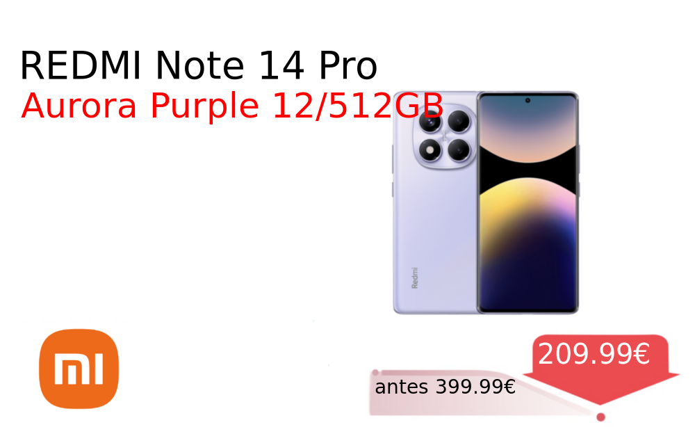 40% 📉 Vaya descuentazo‼‼ REDMI Note 14 Pro❗️🆕 #Mi 📛Precio Ya 209.99€❗️ (PVP: +399.99€) ✨Smartphone con potente rendimiento y amplio almacenamiento Color morado aurora de diseño elegante Tecnología innovadora para máxima experiencia móvil con bateria de larga duracion. cholloya.com/REDMI_NOTE14PRO