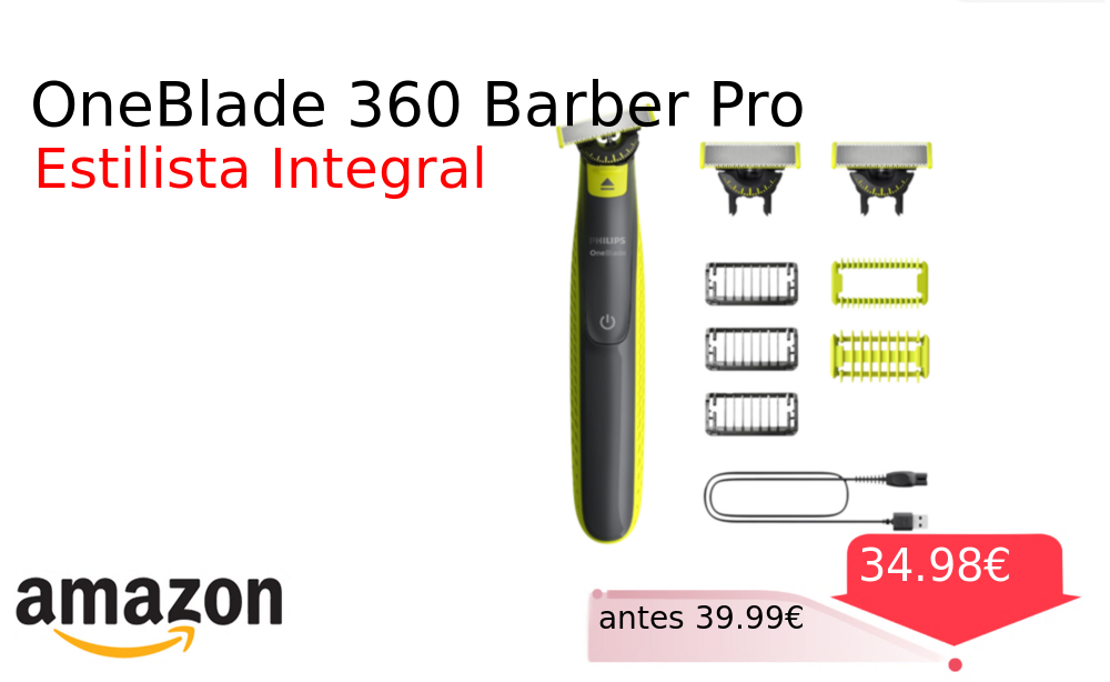 Buen Precio✨ OneBlade 360 Barber Pro❗️🆕 #Amazon 🇪🇸 📛Precio Ya 34.98€❗️ (PVP: +39.99€) ✨Afeitadora y recortadora eléctrica facial y corporal con tecnología avanzada Incluye múltiples peines y accesorios para un cuidado completo y preciso. cholloya.com/PHILIPS_ONEBLAD