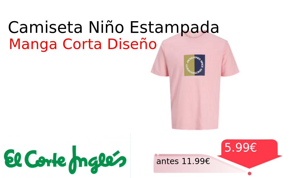 Mitad de precio✂️ Camiseta Niño Estampada❗️🆕 #Elcorteingles 📛Precio Ya 5.99€❗️ (PVP: +11.99€) ✨Camiseta infantil de manga corta con diseño frontal Material suave y cómodo ideal para el día a día Perfecta para looks casuales y divertidos. cholloya.com/JACKJONES_CAMIS