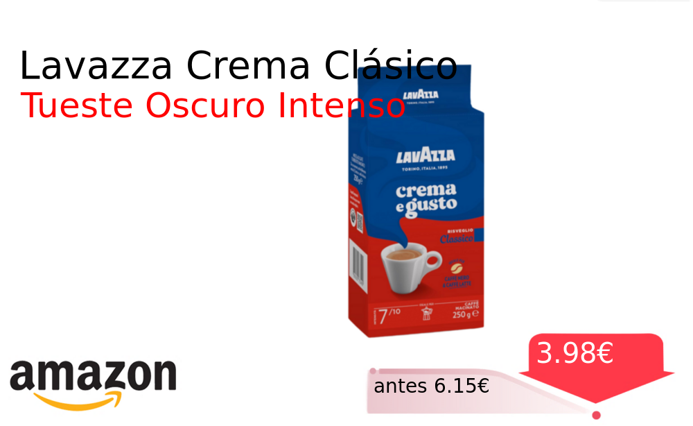 Más de un 30% 🚀 Lavazza Crema Clásico❗️🆕 #Amazon 🇪🇸 📛Precio Ya 3.98€❗️ (PVP: +6.15€) ✨Café molido natural con tueste oscuro e intensidad siete Notas aromáticas de especias mezcla arábica y robusta Ideal para cafetera italiana de filtro. cholloya.com/LAVAZZA_CREMA_G