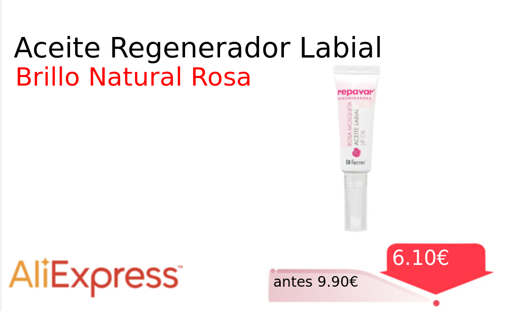 Más de un 30% 🚀 Aceite Regenerador Labial❗️🆕 #AliExpress 📛Precio Ya 6.10€❗️ (PVP: +9.90€) ✨Aceite labial regenerador con rosa mosqueta que repara y nutre profundamente Proporciona un brillo natural y efecto gloss duradero para labios suaves. cholloya.com/REPAVAR_LIP_OIL