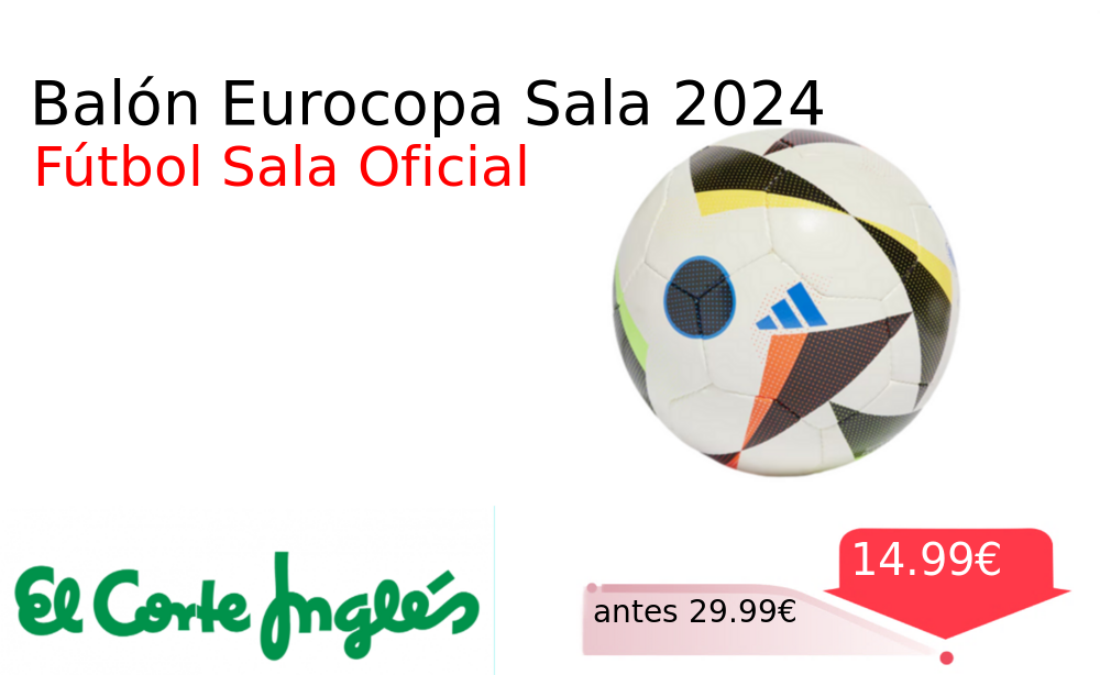 Mitad de precio✂️ Balón Eurocopa Sala 2024❗️🆕 #Elcorteingles 📛Precio Ya 14.99€❗️ (PVP: +29.99€) ✨Balón oficial de fútbol sala con diseño Eurocopa 2024 Material duradero y superficie texturizada para máximo control Ideal para partidos profesionales y entrenamientos. cholloya.com/ADIDAS_EUROSALA