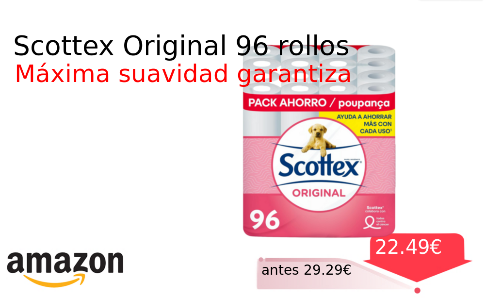 Buen Precio✨ Scottex Original 96 rollos❗️🆕 #Amazon 🇪🇸 📛Precio Ya 22.49€❗️ (PVP: +29.29€) ✨Papel higiénico Scottex Original con máxima suavidad y resistencia Set de noventa y seis rollos distribuidos en prácticos paquetes para tu hogar. cholloya.com/SCOTTE_ORIGINAL