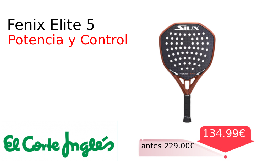40% 📉 Vaya descuentazo‼‼ Fenix Elite 5❗️🆕 #Elcorteingles 📛Precio Ya 134.99€❗️ (PVP: +229.00€) ✨Pala de pádel Siux con diseño aerodinámico y gran control Ideal para jugadores que buscan precisión en cada golpe y máximo rendimiento en la. cholloya.com/SIUX_FENIX_ELIT