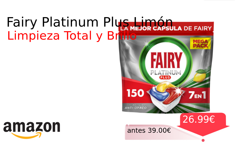 Más de un 30% 🚀 Fairy Platinum Plus Limón❗️🆕 #Amazon 🇪🇸 📛Precio Ya 26.99€❗️ (PVP: +39.00€) ✨Cápsulas todo en uno con esencia de limón que eliminan restos difíciles Proporcionan máxima limpieza brillo excepcional y protección anticálcica para tu vajilla diaria. cholloya.com/FAIRY_PLATINUM_