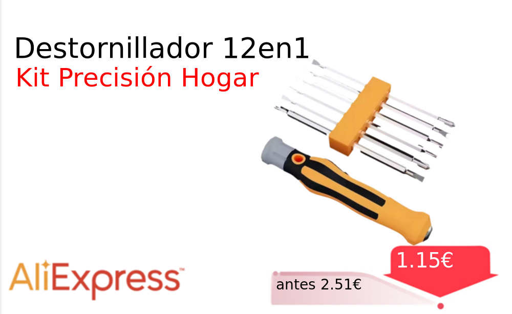 Mitad de precio✂️ Destornillador 12en1❗️🆕 #AliExpress 📛Precio Ya 1.15€❗️ (PVP: +2.51€) ✨Juego completo con doce puntas magnéticas intercambiables Ideal para reparaciones domésticas y trabajos de precisión Diseño ergonómico y multifuncional para uso manual profesional. cholloya.com/DESTORNILLADOR_