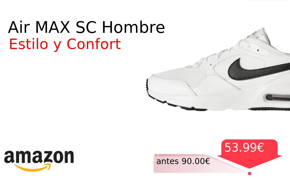 40% 📉 Vaya descuentazo‼‼ Air MAX SC Hombre❗️🆕 #Amazon 🇪🇸 📛Precio Ya 53.99€❗️ (PVP: +90.00€) ✨Zapatillas hombre con tecnología Air MAX para máximo confort y estilo urbano Diseño moderno y materiales duraderos ideales para uso diario. cholloya.com/NIKE_AIRMAX_SC
