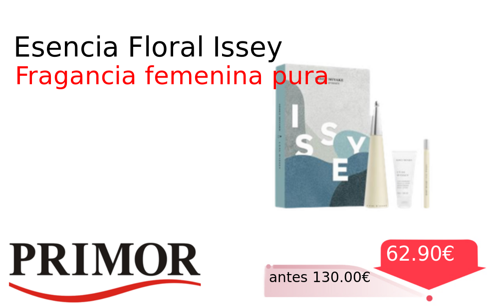 Mitad de precio✂️ Esencia Floral Issey❗️🆕 #Primor 📛Precio Ya 62.90€❗️ (PVP: +130.00€) ✨Fragancia floral acuática con notas de loto y lirio de los valles Elegancia atemporal en un diseño minimalista que evoca pureza y frescura natural. cholloya.com/ISSEY_LEAU_ISSE