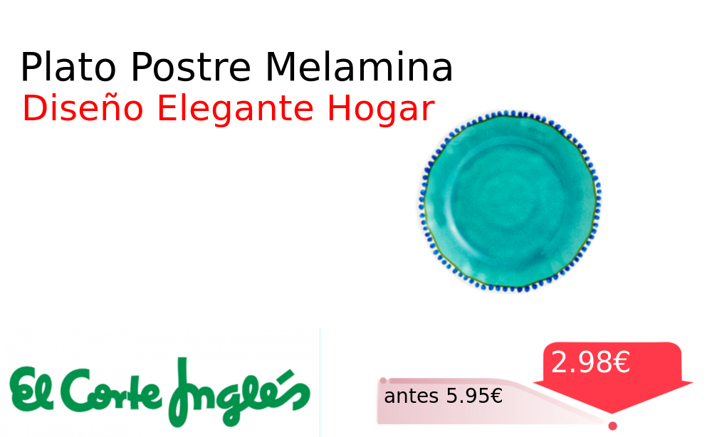 40% 📉 Vaya descuentazo‼‼ Plato Postre Melamina❗️🆕 #Elcorteingles 📛Precio Ya 2.98€❗️ (PVP: +5.95€) ✨Plato de postre de melamina con diseño elegante y duradero Ideal para servir tus dulces favoritos en cualquier ocasión especial del hogar. cholloya.com/ATLANTIS_POSTRE