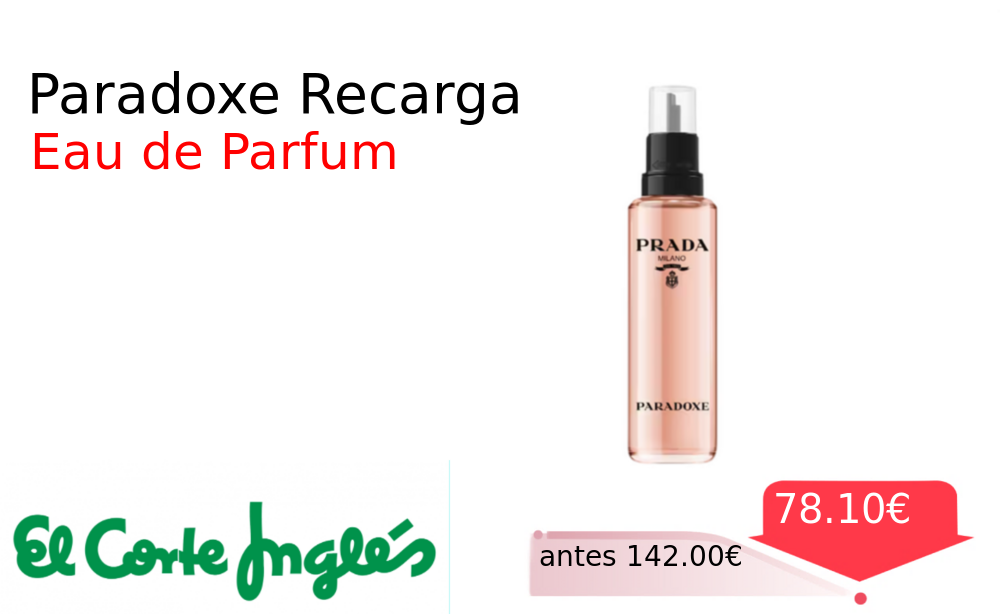 40% 📉 Vaya descuentazo‼‼ Paradoxe Recarga❗️🆕 #Elcorteingles 📛Precio Ya 78.10€❗️ (PVP: +142.00€) ✨Fragancia icónica con notas florales y amaderadas que perdura todo el día Elegancia italiana en cada pulverización intensidad cautivadora y personalidad única. cholloya.com/PRADA_PARADOXE