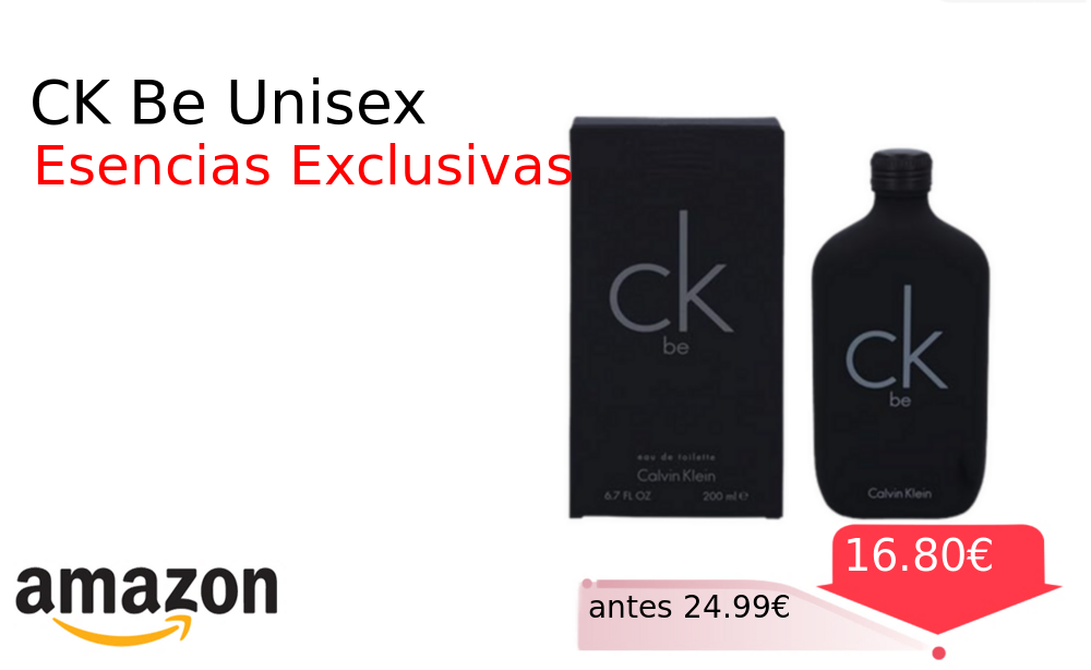 Más de un 30% 🚀 CK Be Unisex❗️🆕 #Amazon 🇪🇸 📛Precio Ya 16.80€❗️ (PVP: +24.99€) ✨Fragancia unisex con esencia de bergamota y lavanda combinada con especias blancas y sándalo Aroma sofisticado y duradero para ocasiones especiales. cholloya.com/CK_BE_UNISEX