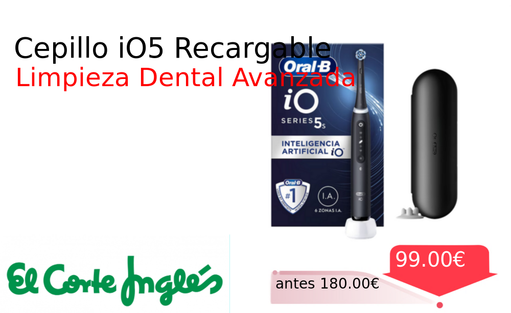40% 📉 Vaya descuentazo‼‼ Cepillo iO5 Recargable❗️🆕 #Elcorteingles 📛Precio Ya 99.00€❗️ (PVP: +180.00€) ✨Cepillo eléctrico recargable con tecnología avanzada para una limpieza dental profesional Elimina placa eficazmente y cuida tus encías diariamente con diseno innovador y funcional. cholloya.com/ORALB_IO5_RECAR