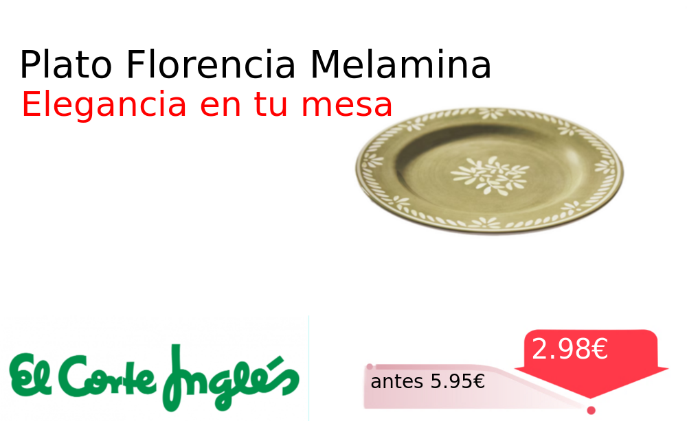40% 📉 Vaya descuentazo‼‼ Plato Florencia Melamina❗️🆕 #Elcorteingles 📛Precio Ya 2.98€❗️ (PVP: +5.95€) ✨Plato llano de melamina con diseño elegante perfecto para tu mesa diaria Material resistente y fácil de limpiar ideal para uso cotidiano. cholloya.com/CORTEINGLES_FLO