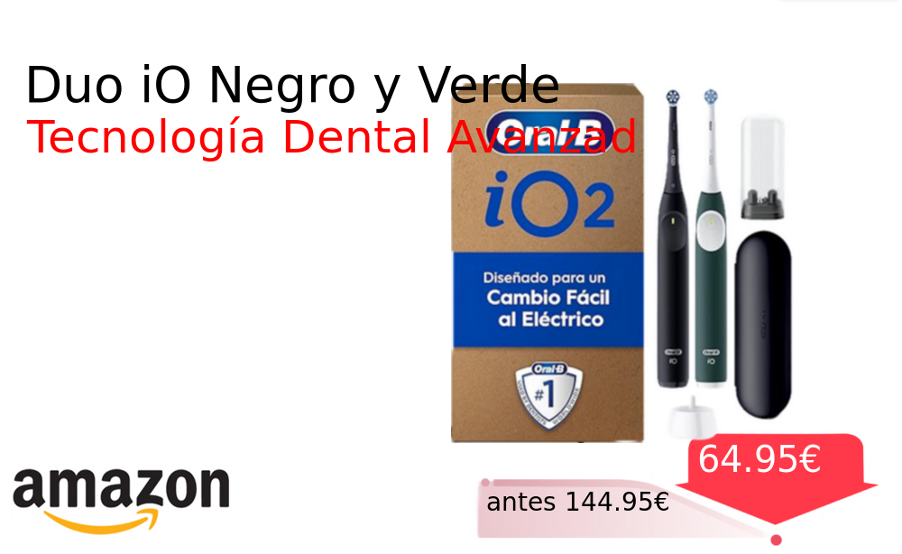 Mitad de precio✂️ Duo iO Negro y Verde❗️🆕 #Amazon 🇪🇸 📛Precio Ya 64.95€❗️ (PVP: +144.95€) ✨Pack doble de cepillos eléctricos Oral-B iO con tecnología avanzada incluye cabezales de repuesto y estuche de viaje para máxima comodidad diaria. cholloya.com/ORALB_IO_DUO