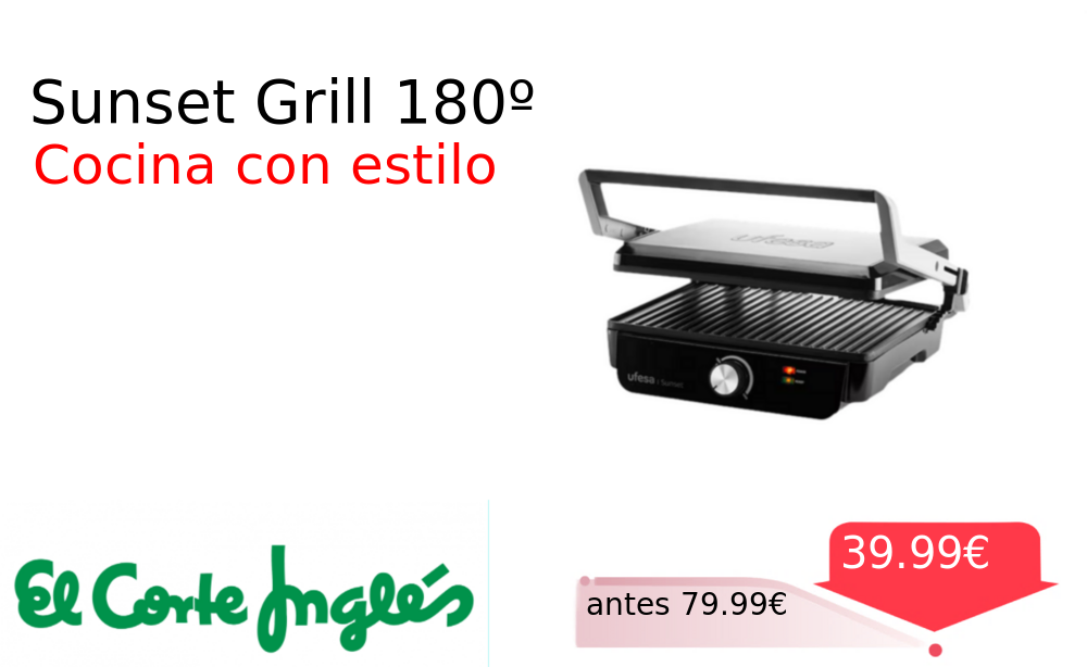 Mitad de precio✂️ Sunset Grill 180º❗️🆕 #Elcorteingles 📛Precio Ya 39.99€❗️ (PVP: +79.99€) ✨Grill Ufesa Sunset con apertura total para cocinar fácilmente Ideal para preparar platos saludables con resultados profesionales en tu hogar. cholloya.com/UFESA_SUNSET_GR