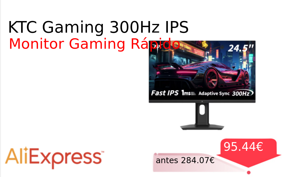 Mitad de precio✂️ KTC Gaming 300Hz IPS❗️🆕 #AliExpress 📛Precio Ya 95.44€❗️ (PVP: +284.07€) ✨Monitor gaming de 24 5 pulgadas con panel IPS rápido resolución FHD 1080p y tasa de refresco de 300 Hz Tecnología HDR FreeSync. cholloya.com/KTC_24GAMING_30