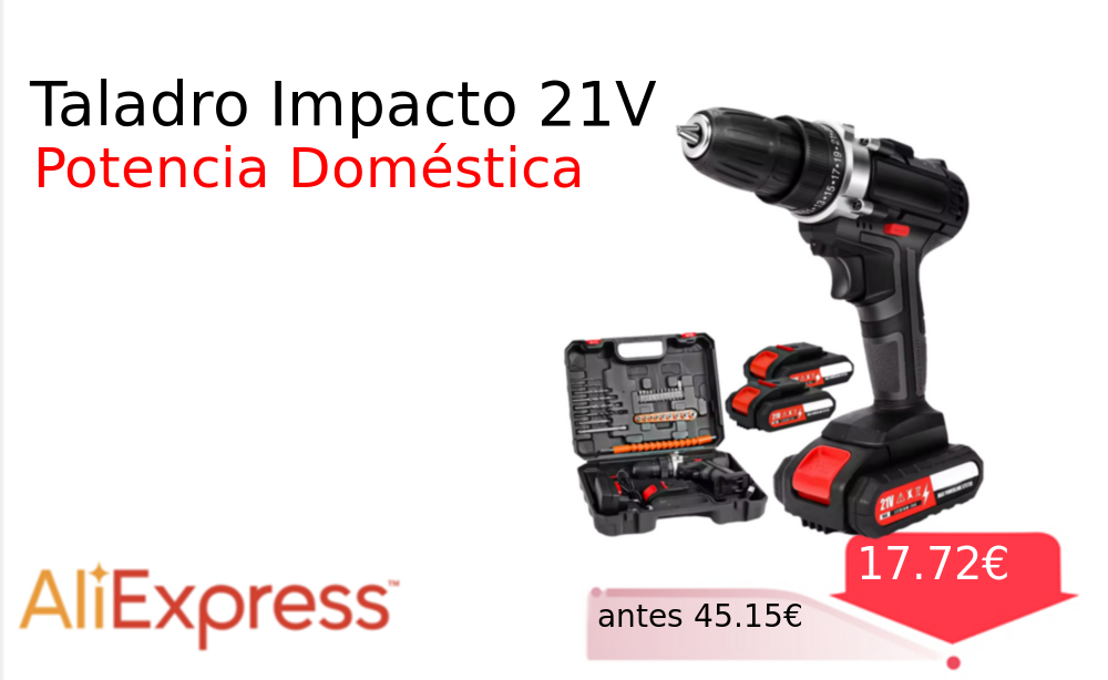 Mitad de precio✂️ Taladro Impacto 21V❗️🆕 #AliExpress 📛Precio Ya 17.72€❗️ (PVP: +45.15€) ✨Taladro de impacto inalámbrico recargable con batería de litio Potencia de 40nm y 21V para trabajos domésticos Herramienta manual versátil y eficiente. cholloya.com/TALADRO_IMPACTO
