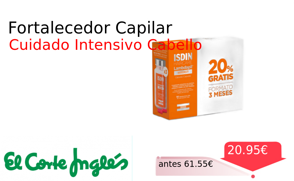 Mitad de precio✂️ Fortalecedor Capilar❗️🆕 #Elcorteingles 📛Precio Ya 20.95€❗️ (PVP: +61.55€) ✨Cápsulas con vitaminas minerales y extracto de cola de caballo para fortalecer tu cabello y uñas desde el interior de forma natural. cholloya.com/LAMBDAPIL_HAIRD
