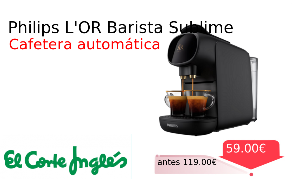 Mitad de precio✂️ Philips L'OR Barista Sublime❗️🆕 #Elcorteingles 📛Precio Ya 59.00€❗️ (PVP: +119.00€) ✨Cafetera automática con sistema de cápsulas L'OR Prepara dos espressos simultáneos o uno doble Personaliza el volumen para disfrutar café de alta calidad. cholloya.com/PHILIPS_LOR_BAR